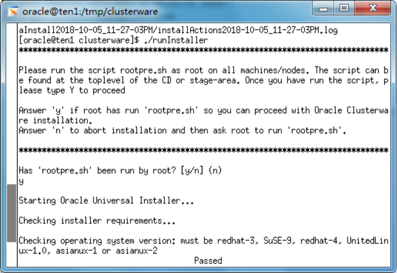 [oracle@node-rac1 cluvfy]$ ./runcluvfy.sh stage -pre crsinst -n ten1,ten2 -verbose